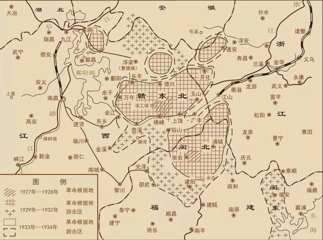 大革命失败,“八七”会议后,时任中共江西农委书记的方志敏从吉安秘密潜回弋阳九区,与邵式平、黄道等人领导发动了“弋阳、横峰暴动”,1928年5月,粉碎了敌人第一次局部“围剿”后,先后在弋阳和横峰,召开了县工农兵代表大会,建立了两县的苏维埃政权,形成了最早的赣东北革命根据地。之后,经过3年多艰苦卓绝的武装斗争,1931年11月7日,在以毛泽东为首的中华苏维埃共和国中央政府成立的同一天,以方志敏为主席的赣东北省苏维埃政府同时成立。全盛时期赣东北苏区先后包括江西省的弋阳、横峰、上饶等20余县;福建的崇安、建阳等12县;浙江的江山、开化等13县;安徽的婺源、祁门等7县,拥有100余万人口,红军发展到3万余人。