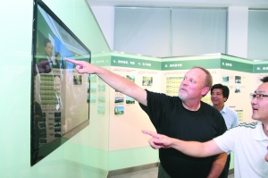 杰夫在衢州二中教育国际交流陈列室播放的纪录片里,找到了父亲的身影