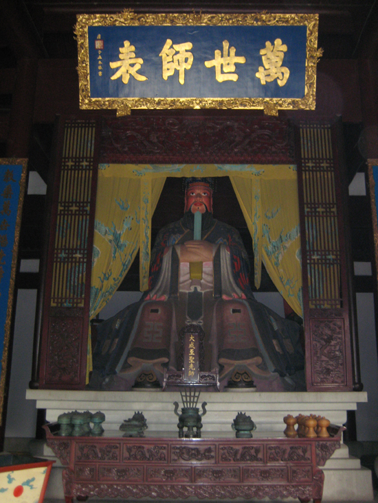 思鲁阁:供奉孔子夫妇楷木像及吴道子画,先圣遗像碑》