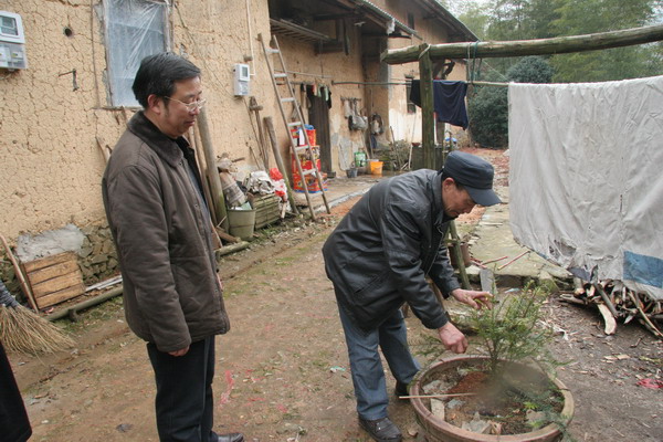 陈忠涛副局长(左)到农户家中调研红豆杉种植情况
