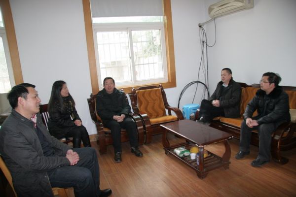 上图为张爱国局长(右二)、陈忠涛副局长(左三)与社区干部商谈帮扶事宜
