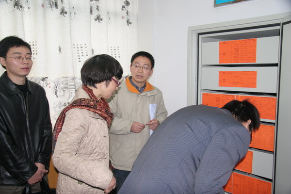 2012年11月28日,以浙江省档案局副局长丁越飞为组长的浙江省建设“平安浙江”档案安全监管暨2012年度档案工作目标考核组到衢州市考核。考核组实地查看了衢州市档案登记备份中心建设情况,现场抽查了档案登记备份数据及在线、脱机和异地备份情况,随后听取了衢州市档案局张爱国局长的工作汇报,翻阅了相关台帐。最后,丁越飞副局长作了检查考核情况反馈,他充分肯定了衢州市在建设“平安浙江”档案安全监管和2012年度档案工作的成绩,对衢州市档案局全体工作人员在资金相对困难、人员不多、工作条件比较艰苦的情况下,依然较好地完成了省、市交给的工作任务表示满意,同时也希望衢州市借助新馆建设的契机,大胆创新,使衢州市档案工作跃上新的台阶。考核会由浙江省档案局登记管理处许春芝处长主持,衢州市委副秘书长汪宗德到会并就衢州市下一步的档案工作作了表态发言。上图为考核会现场。