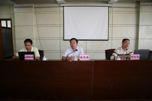 衢州市档案局陈忠涛副局长(中)、信息技术处副处长何志华、上海中信公司技术人员在发言席就座