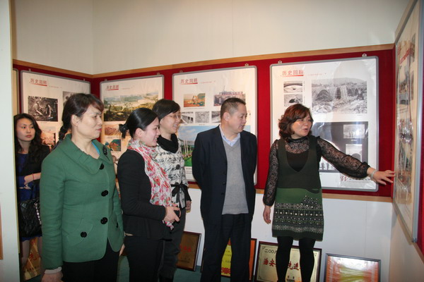 市档案局局长张爱国同协作组长一起参观市乌引管理局陈列室