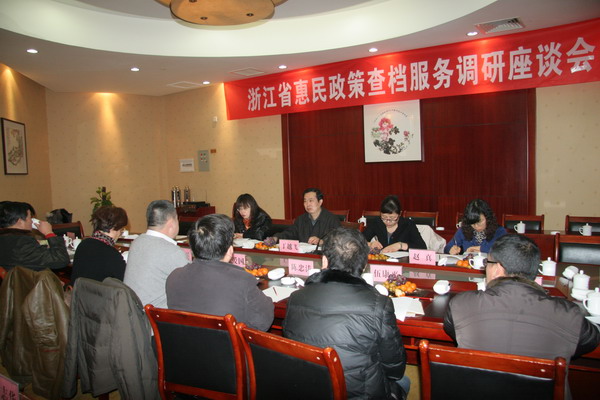 2012年2月10日,由浙江省档案局副局长丁越飞带队的省惠民政策查档服务调研组来衢,就去年省委组织部等部门出台的一系列惠民文件所产生的档案查阅情况召开座谈会,市档案局中层以上干部及市委组织部、市信访局、市民政局、市社保局等部门的相关处室负责人参加座谈会。市档案局张爱国局长首先汇报了衢州查档利用情况,然后各部门根据各自实际就如何更好落实惠民政策文件、解决百姓生活保障问题提出了自己的意见和建议,最后丁越飞副局长充分肯定了衢州市在做好惠民政策查档服务的成绩,并就进一步利用好档案,更好更多更快地解决精减退职人员、未参保集体企业退休人员的生活困难补助及养老保障问题提出了几点要求。上图为座谈会现场。