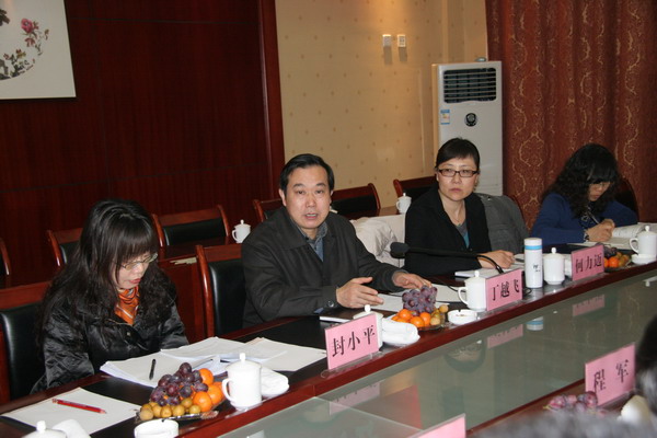 省档案局调研组一行:副局长丁越飞(左二)、业务指导处处长何力迈(右二)、档案保管处副处长封小平(左一)、业务指导处副处长赵真(右一)