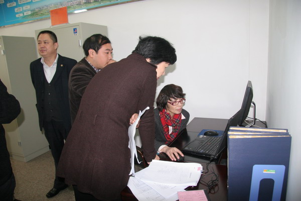 图为检查组实地检查衢州市档案登记备份中心工作开展情况