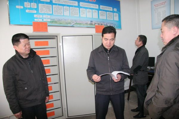 上图为鞠局长查看登记备份台帐,左一为省档案局办公室主任胡元潮