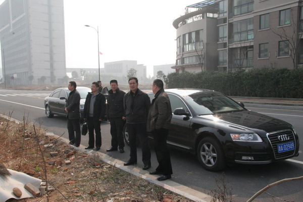 上图为鞠建林局长在张爱国局长陪同下参观新馆选址地