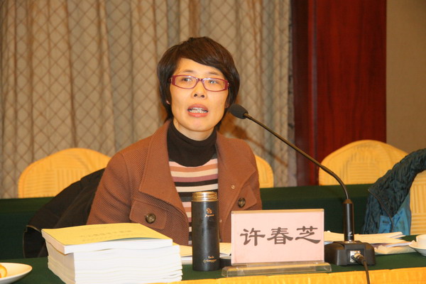 衢州市政府副秘书长郑小瑛向考核组介绍衢州档案发展情况