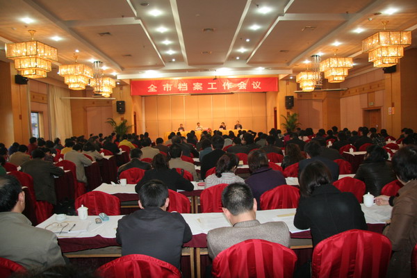 2010年4月7日下午,衢州市召开了全市档案工作会议,会上传达贯彻了全国、全省档案工作会议精神,总结了2009年全市档案工作,表彰了2009年度档案系统先进集体和个人,部署了2010年全市档案工作。上图为大会现场。