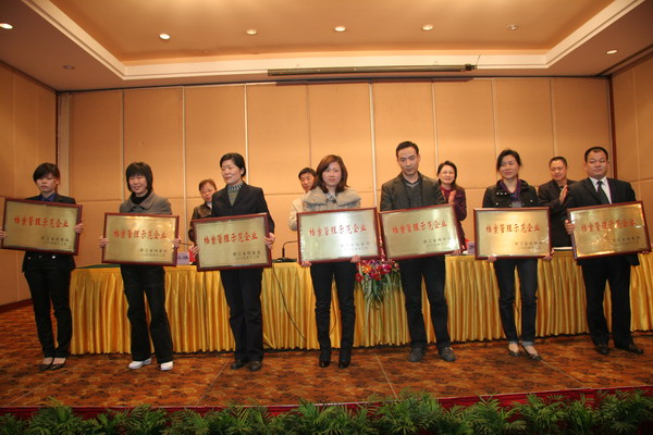 副市长罗卫红、市档案局局长张爱国向受表彰的单位颁奖