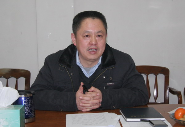 衢州市档案局局长张爱国向检查组汇报市档案局学习实践活动开展情况