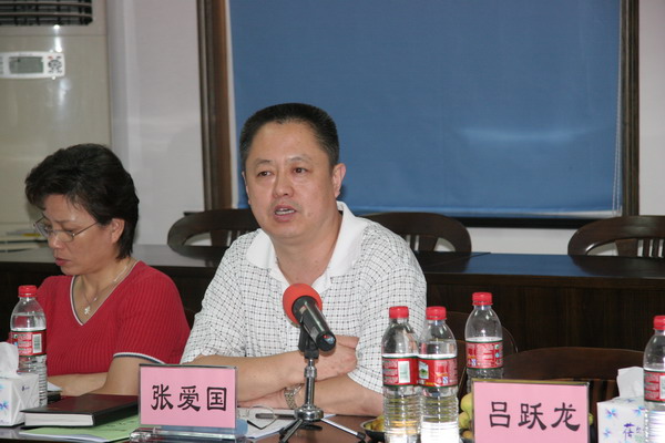 图为柯城区委副书记:吕跃龙(右三)讲话,左三为市档案局局长:张爱国,左二为市档案局副局长:程军,右二为市档案局副局长:陈忠涛,左一为市档案局纪检组长:聂益武
