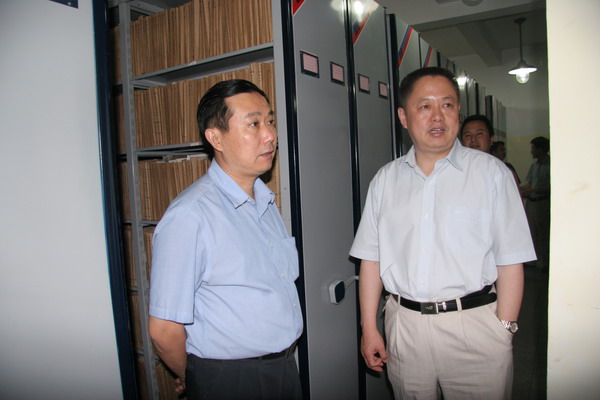 2009年5月21日,以省档案局副局长丁越飞为组长的省档案安全专项督查组对衢州市档案馆安全工作开展专项督查。督查组听取了市档案馆安全工作情况汇报,查看了库房及安全设施,抽查了部分案卷,并进行了情况反馈。相关报道请浏览:安全专项督查。上图为督查组组长、省档案局副局长丁越飞(左一)在市档案局局长张爱国(右一)的陪同下,对档案局库房进行检查。