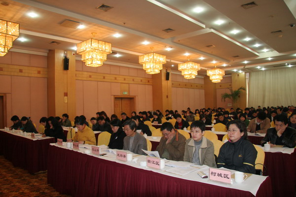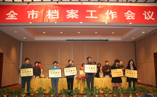 2008年3月7日,衢州市全市档案工作会议召开,会议传达贯彻了全国、全省档案工作会议精神,总结了2007年全市档案工作,表彰了全市档案系统先进集体和先进工作者、档案目标管理先进单位,部署了2008年全市档案工作。详情请收看视频:全市档案工作会议。上图为会议全景。