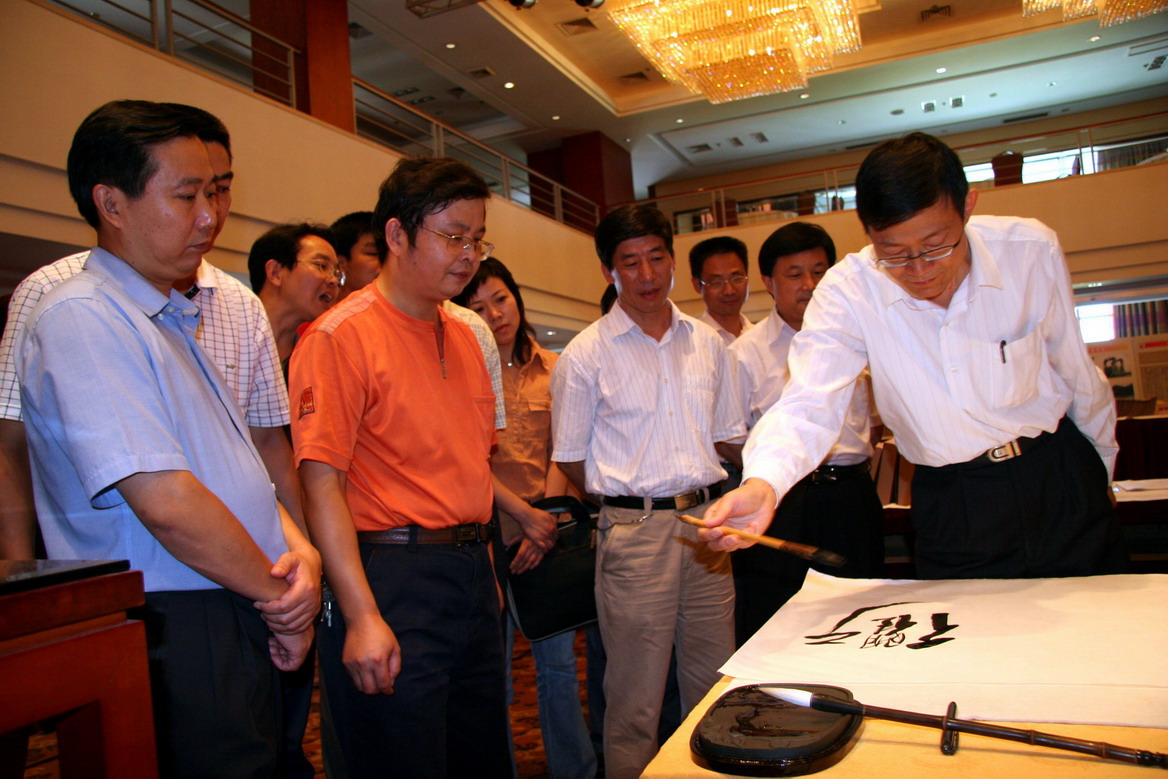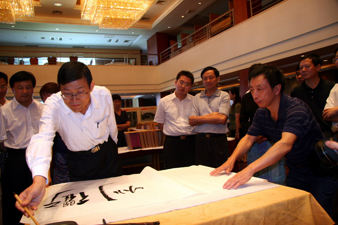 杨冬权为衢州市档案馆题词(右二为省委副秘书长张水堂,左一为省档案局副局长丁越飞)