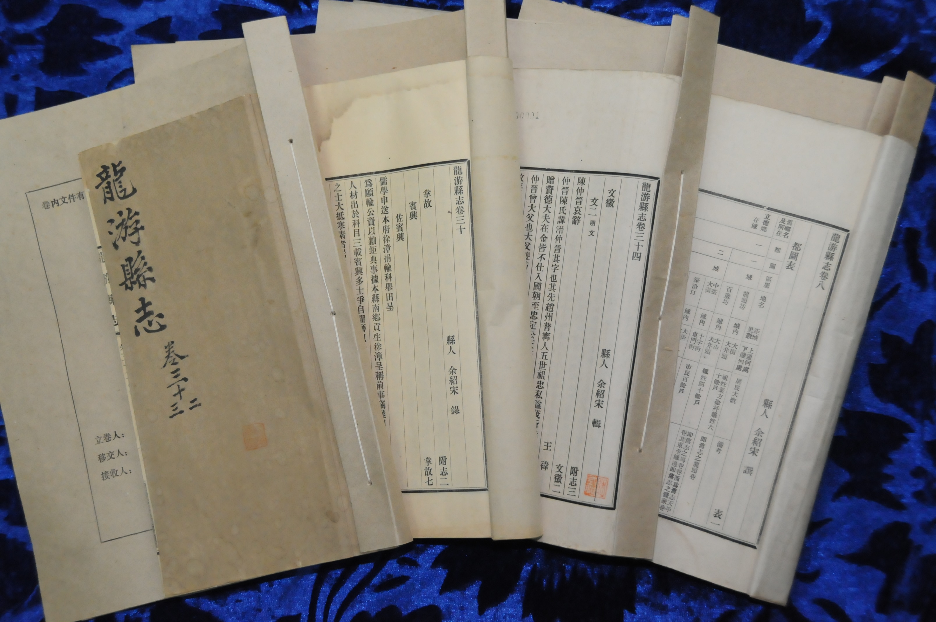 由龙游县档案馆选送的余绍宋总纂民国《龙游县志》,计16册42卷,于1925年由京城印书局出版。余绍宋为浙江百位历史文化名人之一,这也是我市唯一一位。余绍宋的方志学可称得上是中国传统方志编纂学之关门绝唱,民国《龙游县志》曾被梁启超誉为“此乃方志新纪元”。