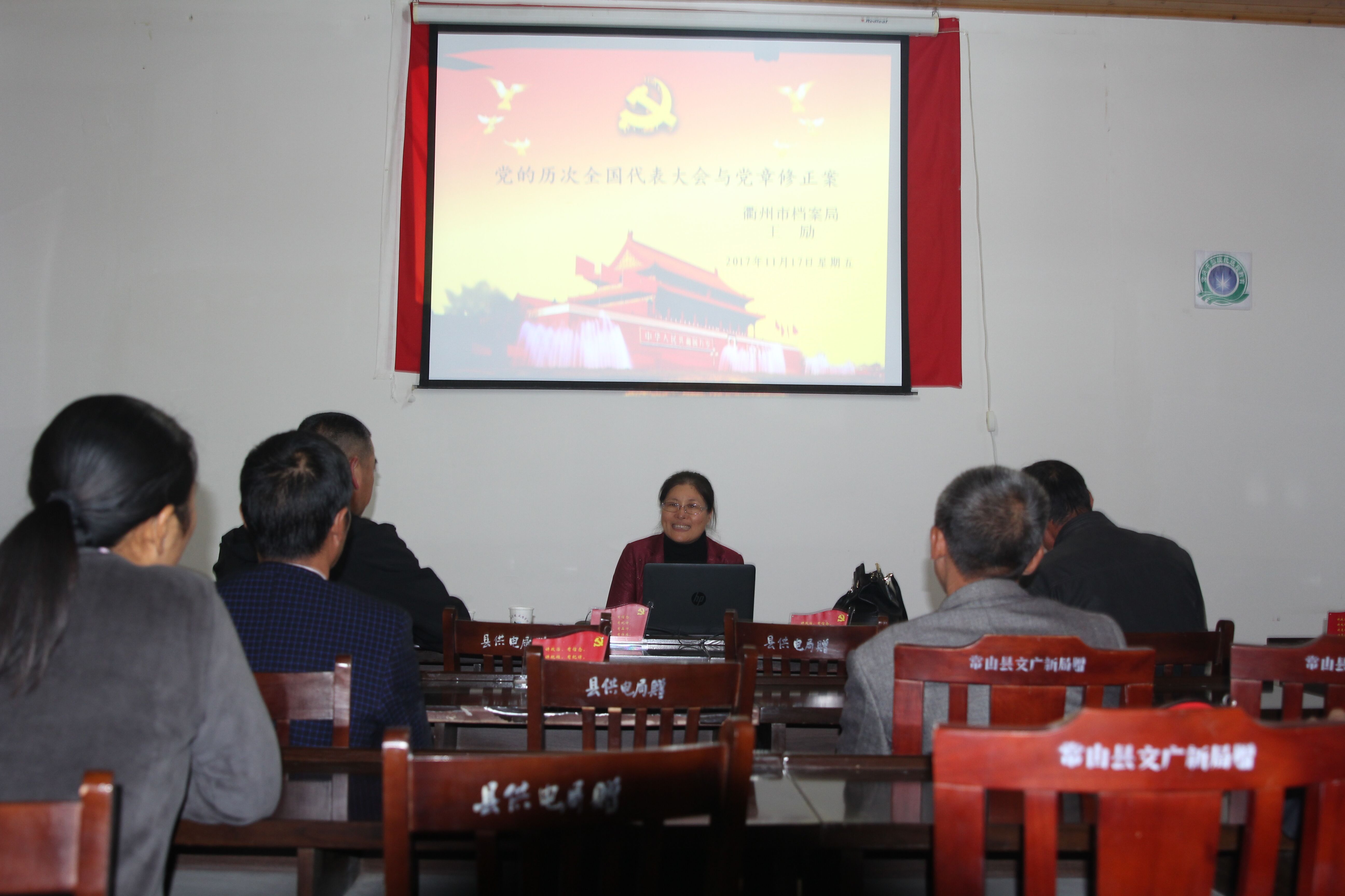11月17日,市档案局王励副局长、祝雪平副局长等一行深入到结对联系村常山县芳村镇新桥村宣讲党的十九大精神,为村里的党员、群众带去了一堂生动、接地气的党课。 。