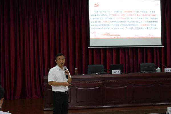 王洪明从立足交汇节点,深刻理解百年华诞光辉历史;回望风雨历程,深刻认识百年奋斗伟大功绩;擘画光明未来,深刻把握百年梦想实践要求三个层面,深入解读了习近平总书记“七一”重要讲话精神,将全国党史与衢州地方党史有机结合,国际国内形势相结合,整个讲课全面系统、内涵丰富、逻辑严密、思想深刻、信息量大。