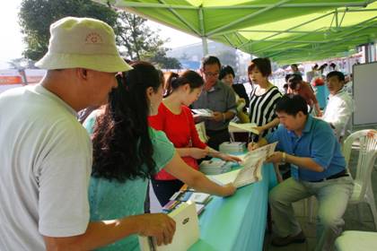 早上八点多钟,离活动正式开幕还有一个多小时,档案馆工作人员刚把活动赠送的首批资料及书籍摆上展台,宣传折页和《锦绣长兴2012》、《长兴事务通》等书籍资料就被围上来的人们索取一空,其中许多人还拉着长兴档案局(馆)长张满山要求签名留念。一时间,“签名送书”成了活动现场的一景。