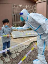 经过四个多小时的紧张忙碌,志愿者们终于顺利完成了全部核酸检测任务,乘车返回乡政府。当大家脱下防护服时,手腕、耳后根都留下了长长的印记,背后也都湿透,但每位志愿者却都不约而同地露出了轻松的笑容。
