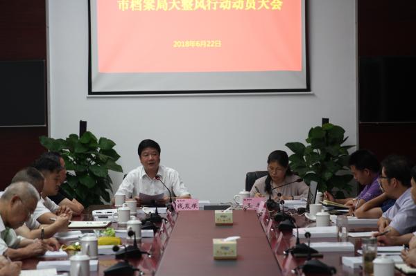 一是召开全局机关干部会议,传达学习徐书记讲话精神。6月20日晚上,由市档案局副局长王励主持召开会议,全体干部职工认真学习观看了徐书记在全市大整风“十大行动”动员大会视频和《徐文光同志在全市大整风“十大行动”动员大会上的讲话》。会议要求全市档案干部要高度统一思想,凝聚共识;主动适应新常态,争做表率;认真查摆问题,抓好整改。