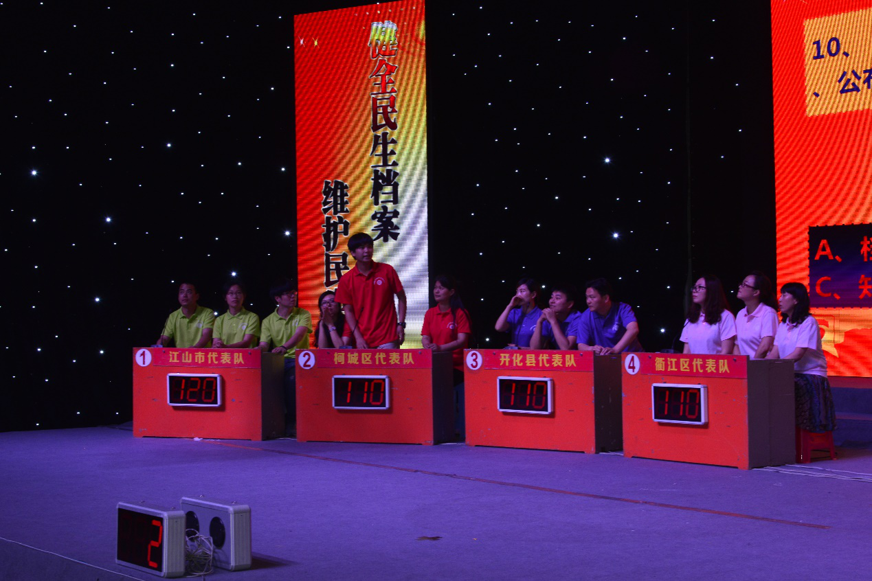 为隆重纪念建党95周年和“6·9”国际档案日, 6月7日下午,浙江省衢州市举行“两学一做”学习教育知识竞赛暨首届档案业务技能比武。中共衢州市委常委、秘书长李锋到场观看比赛并为一等奖获得者颁奖。该比赛以践行“两学一做”、争当最美先锋、展示兰台新风为主题,以党章、党规、总书记系列讲话和档案基础业务为竞赛内容,全市共8个代表队进行了比赛。经过激烈的角逐,江山市代表队获得一等奖。通过知识竞赛和技能比武的形式,使广大档案干部进一步提高了党章党规意识和档案工作业务技能水平,在全市档案系统掀起了“两学一做”学习教育的热潮。