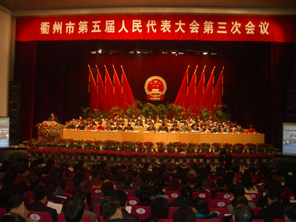 2007年2月29日,市工人文化宫花团锦簇,气氛热烈庄重。上午8时30分,全市人民瞩目的衢州市第五届人民代表大会第三次会议在雄壮的国歌声中隆重开幕。出席大会的319名市人大代表听取了市长孙建国代表市政府所作的《政府工作报告》。