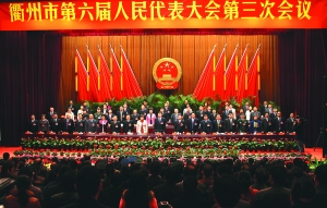 浙江在线11月28日讯 昨日上午10时30分,衢州市第六届人民代表大会第三次会议在雄壮的国歌声中隆重开幕(如下图)。311名市人大代表出席大会开幕式,代表们将行使宪法和法律赋予的神圣职责,补选衢州市第六届人民代表大会常务委员会委员、衢州市人民政府市长,选举衢州市出席浙江省第十二届人民代表大会的代表。