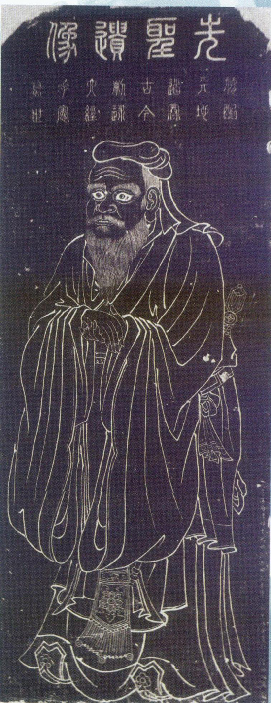 思鲁阁:供奉孔子夫妇楷木像及吴道子画,先圣遗像碑》