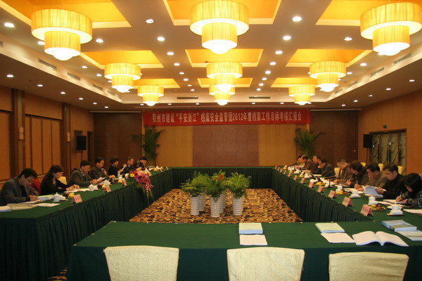 2012年11月28日,以浙江省档案局副局长丁越飞为组长的浙江省建设“平安浙江”档案安全监管暨2012年度档案工作目标考核组到衢州市考核。考核组实地查看了衢州市档案登记备份中心建设情况,现场抽查了档案登记备份数据及在线、脱机和异地备份情况,随后听取了衢州市档案局张爱国局长的工作汇报,翻阅了相关台帐。最后,丁越飞副局长作了检查考核情况反馈,他充分肯定了衢州市在建设“平安浙江”档案安全监管和2012年度档案工作的成绩,对衢州市档案局全体工作人员在资金相对困难、人员不多、工作条件比较艰苦的情况下,依然较好地完成了省、市交给的工作任务表示满意,同时也希望衢州市借助新馆建设的契机,大胆创新,使衢州市档案工作跃上新的台阶。考核会由浙江省档案局登记管理处许春芝处长主持,衢州市委副秘书长汪宗德到会并就衢州市下一步的档案工作作了表态发言。上图为考核会现场。