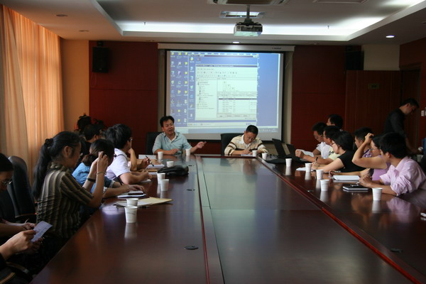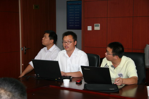 衢州市档案局陈忠涛副局长(中)、信息技术处副处长何志华、上海中信公司技术人员在发言席就座