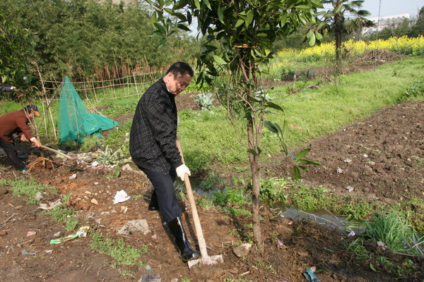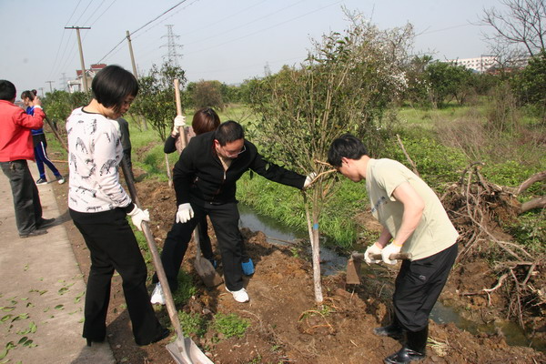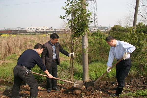 2012年3月31日,阳春三月,正是植树造林的好季节,为响应市委、市政府关于开展“共建森林城市、共享绿色生活”为主题的义务植树活动号召,衢州市档案局全体干部职工来到柯城区花园姜家村,投入到义务植树活动当中,为创建森林城市添绿增色。上图为衢州市档案局局长张爱国(右一)、副局长陈忠涛(中)共同栽下一株树苗。