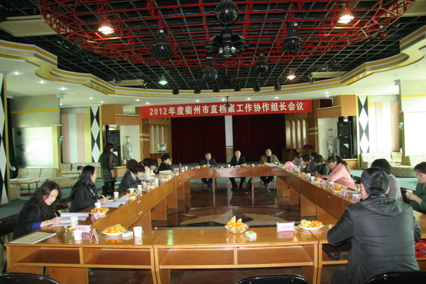 2012年3月26日,衢州市档案局召开市直档案工作协作组长会议。上午,参加会议人员参观了市烟草公司档案室、荣誉室和计算机房,市烟草公司档案员现场演示了数字档案室系统,并介绍了档案工作经验,最后,市档案局督导处处长赵军红就2012年几项重点档案工作进行部署,各协作组长就完成今年工作开展了座谈。下午,参加会议人员又到市乌引管理局参观了档案室并现场观摩了数字化成果演示,听取了档案工作经验介绍。市档案局局长张爱国就近年来市直协作组单位开展档案管理工作的基本情况和2012年档案工作的任务及重点作了重要讲话,市档案局纪检组长聂益武主持了全天的会议,并就如何做好2012年档案工作作了动员讲话。会议最后,协作组长还开展了趣味游戏活动。通过此次会议,学习了先进档案室的经验,加强了各协作组长间的联系,进一步拓宽了视野,活跃了气氛,对全市档案工作者齐心合力、艰苦奋斗,共同开创“十二五”档案工作新局面起到了积极的推动作用。上图为会议现场。
