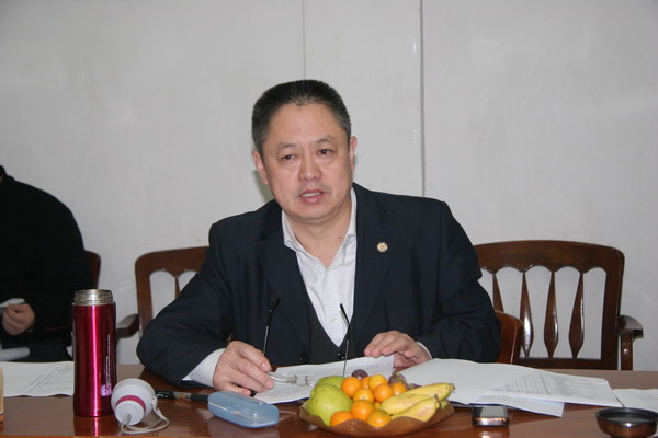 图为衢州市档案局张爱国局长向检查组汇报衢州市档案登记备份工作
