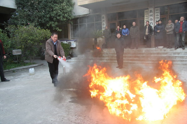 2009年12月21日下午,衢州市档案局邀请市消防支队教官为市档案局全体干部职工讲授消防知识,并进行实地消防演练,增加全局干部职工的消防应急能力。上图为演练现场