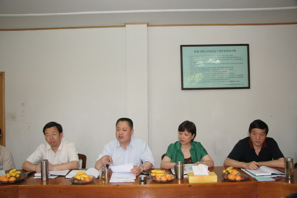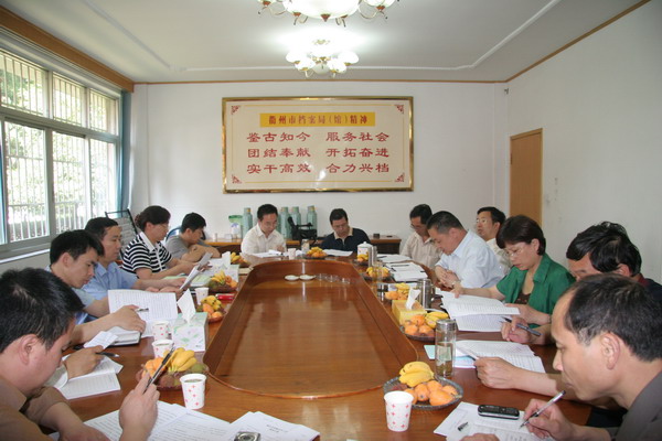 上图为市档案局领导班子参加督查汇报反馈会(左二为市档案局局长张爱国,左三为副局长程军,左一为副局长陈忠涛,右一为纪检组长聂益武)
