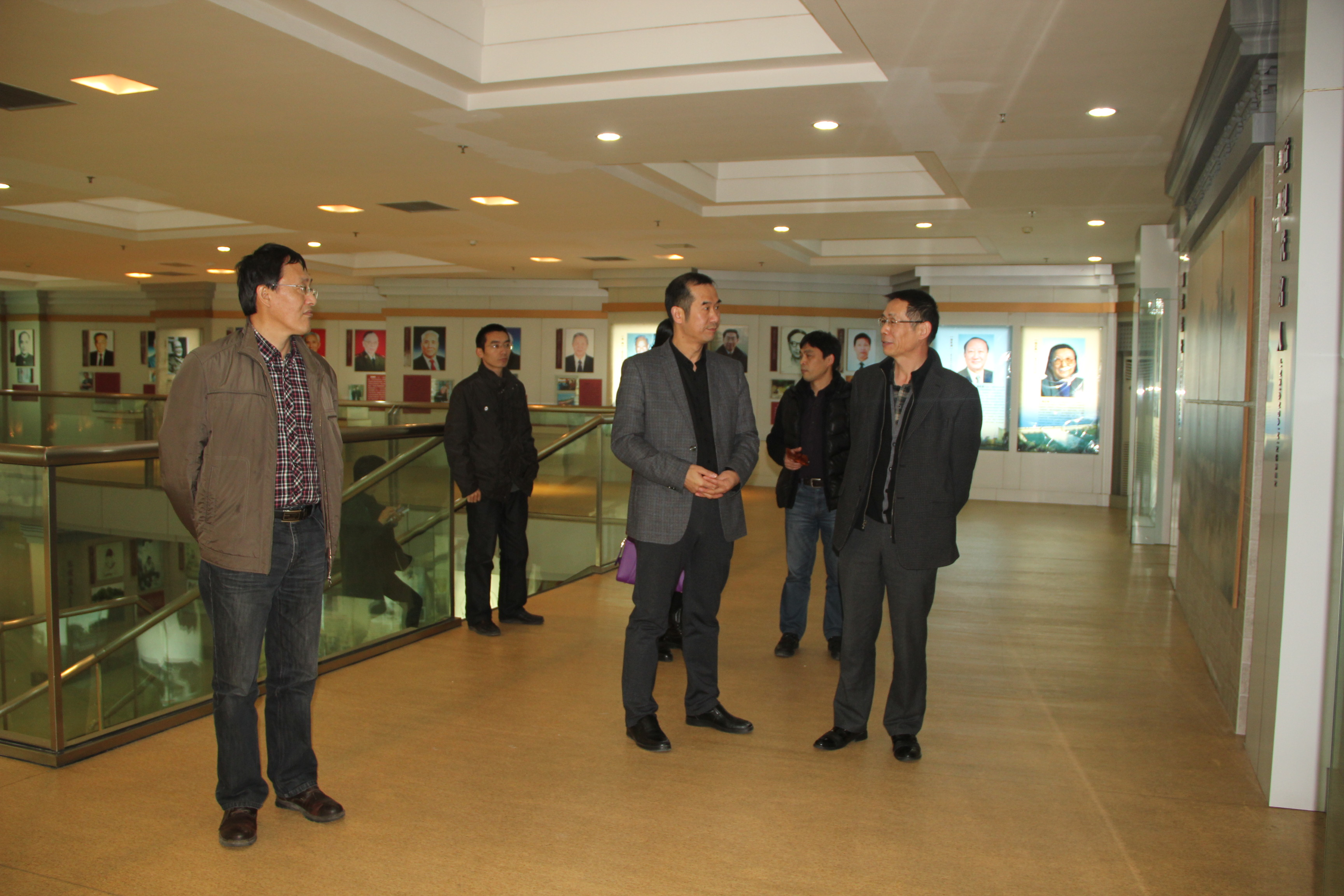 付炳旺局长(前排中)、胡晓华副局长(左一)在叶永强局长(右一)的陪同下参观嘉兴市档案局展厅