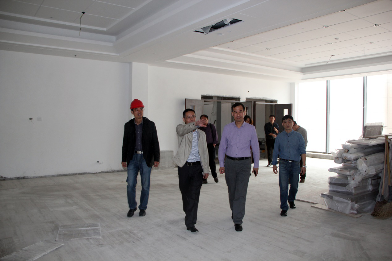 付炳旺局长(右二)向叶永强局长(左二)介绍新馆建设情况