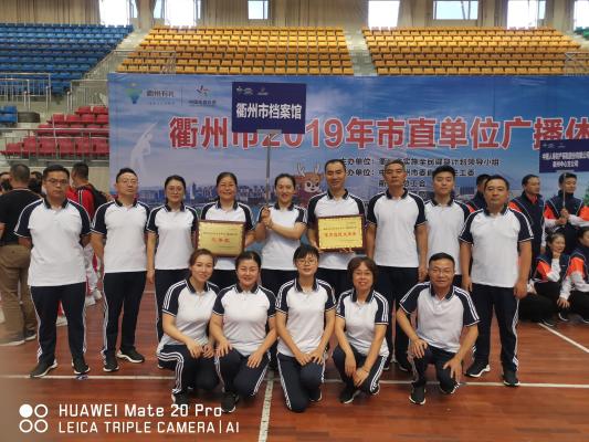 市档案馆对广播操比赛高度重视,积极发动全馆干部职工踊跃报名,并为干部职工训练提供了必要的时间和场地保障;队员们尽量利用空余时间积极投入训练,熟记动作要领,优化动作质量,保持了良好的团队协作精神;比赛中,队员们精神饱满、动作规范、整齐划一,赢得了现场观众的阵阵掌声,最终市档案馆代表队获体育道德风尚奖和三等奖。