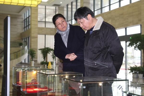 市政协副主席陈建良(右)参观十九大代表参会档案资料展