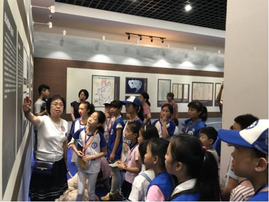 讲解员给小朋友们讲解浙江军民营救美军飞行员档案展览