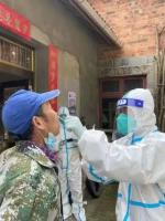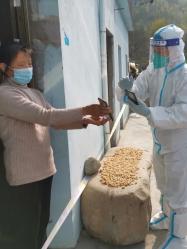 八点左右,志愿者们来到翁源村,村网格员及部分附近黄码人员早已有序的在村文化广场排队等候,志愿者们立马分工合作、熟练配合,扫码登记、撕开药包、采集样本、封存装袋,不一会儿大家就顺利完成了4位村民的核酸检测。