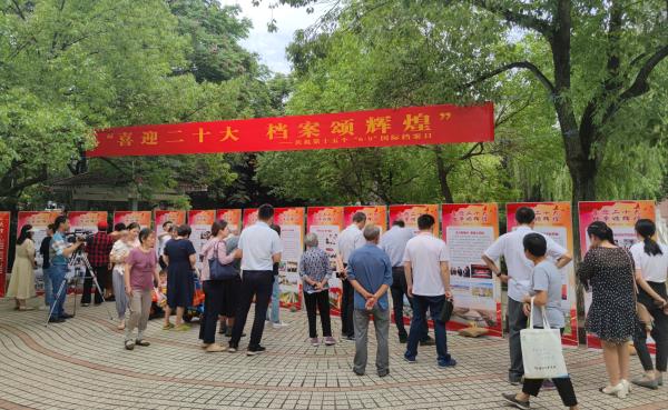 2022年6月9日是国际档案理事会确立的第15个国际档案日,为进一步提高档案工作社会影响力和群众知晓率,营造喜迎党的二十大胜利召开良好氛围,6月9日下午,衢州市档案部门在柯城区荷花街道荷西苑社区安居小区公园广场举办了以“喜迎二十大·档案颂辉煌”为主题的系列宣传活动,市档案局、市档案馆、市档案学会部分团体会员及荷西苑社区干部、小区居民共500多人驻足观看。
